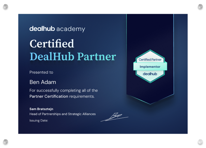 Certified implementation partners receive access to technical resources, API documentation, training, and DealHub’s support team to ensure smooth deployments.